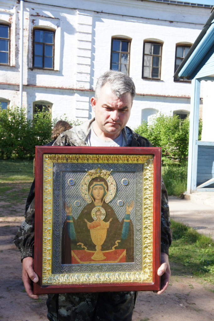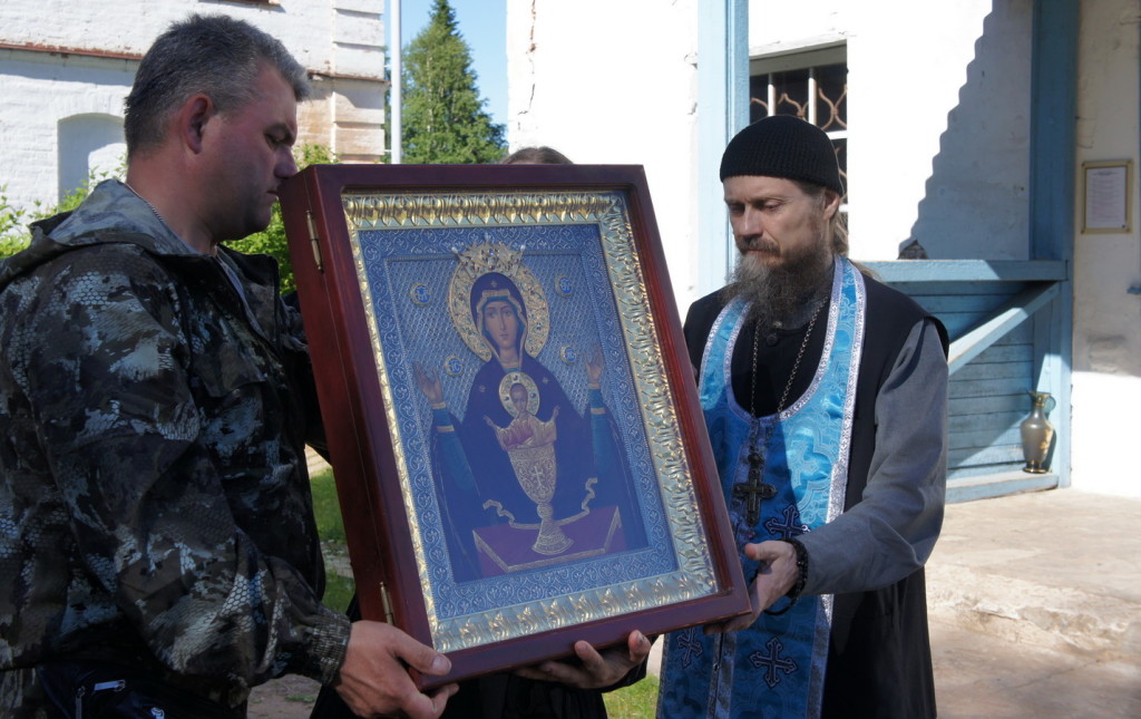 Икону Божией Матери «Неупиваемая Чаша» перевезли из Артемиево-Веркольского монастыря в поселок Сосновку (Пинежский район Архангельской области). В обитель за святыней приехал настоятель сосновского храма священник Сергий Корельский и несколько участников крестного хода из Москвы и Архангельска. Икона будет сопровождать паломников на протяжении всего молитвенного шествия, которое начнется в субботу, 2 июля.